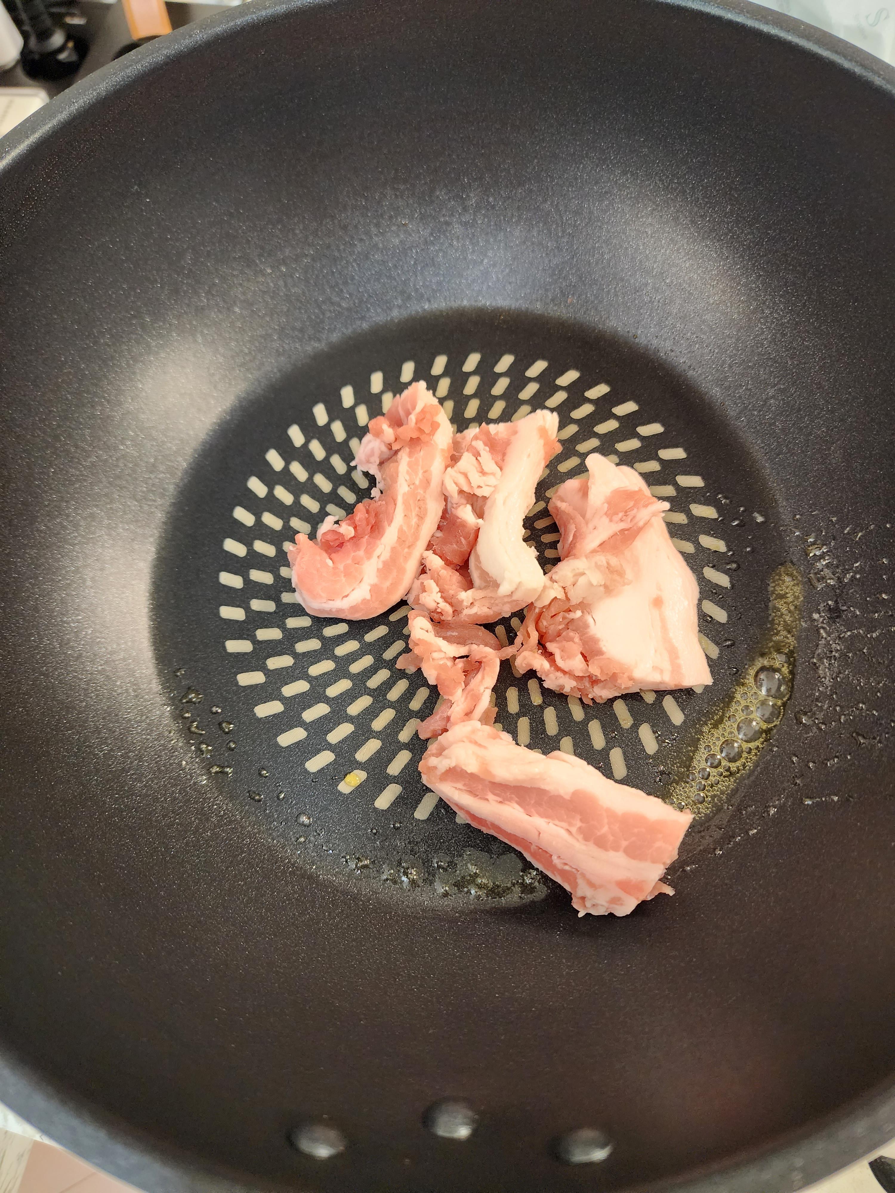 이제 베이컨이나 대패삼겹살 두줄을 준비하여 먹기좋게 잘라주고