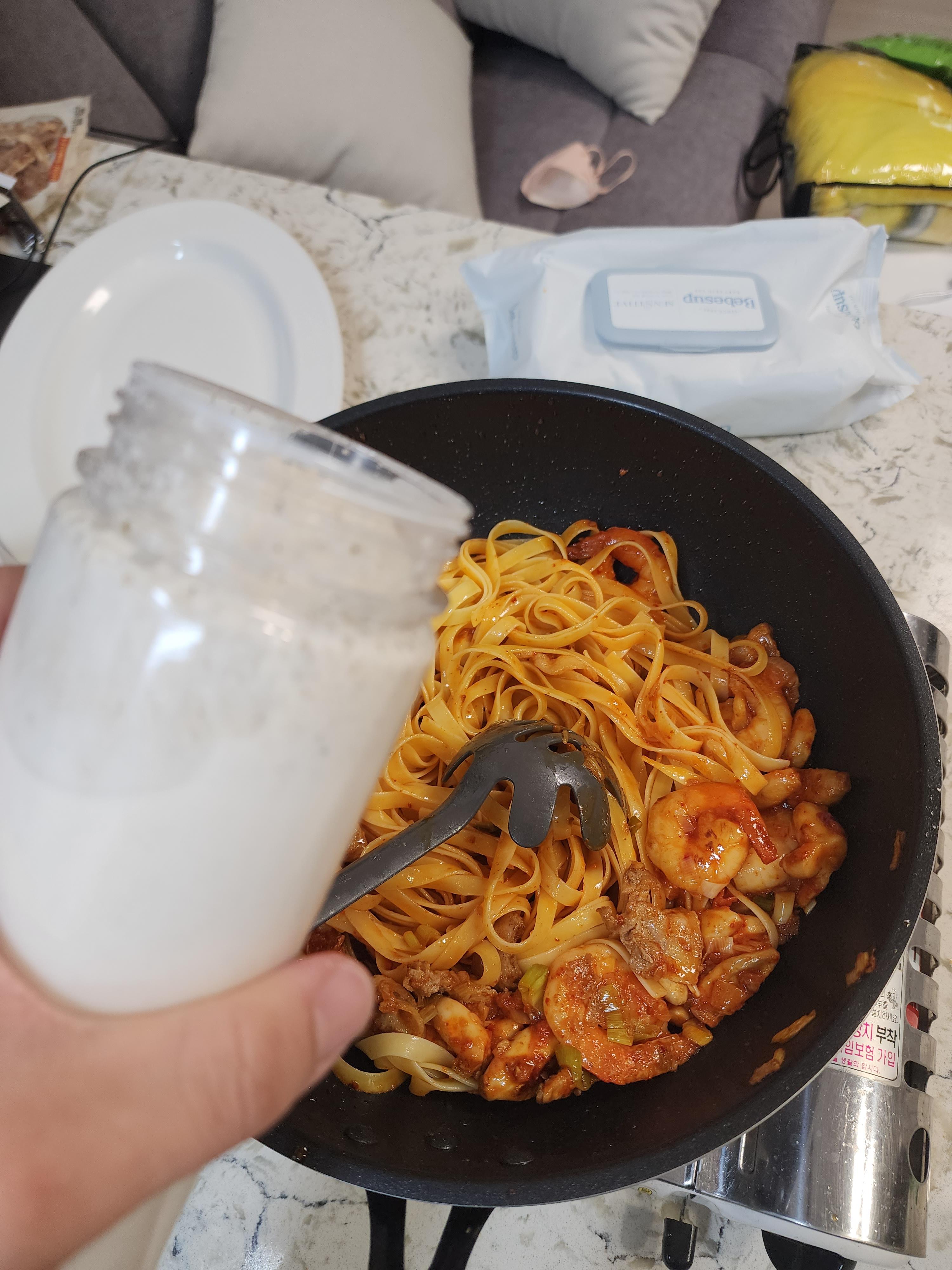 투움바파스타 만들기 끝!
