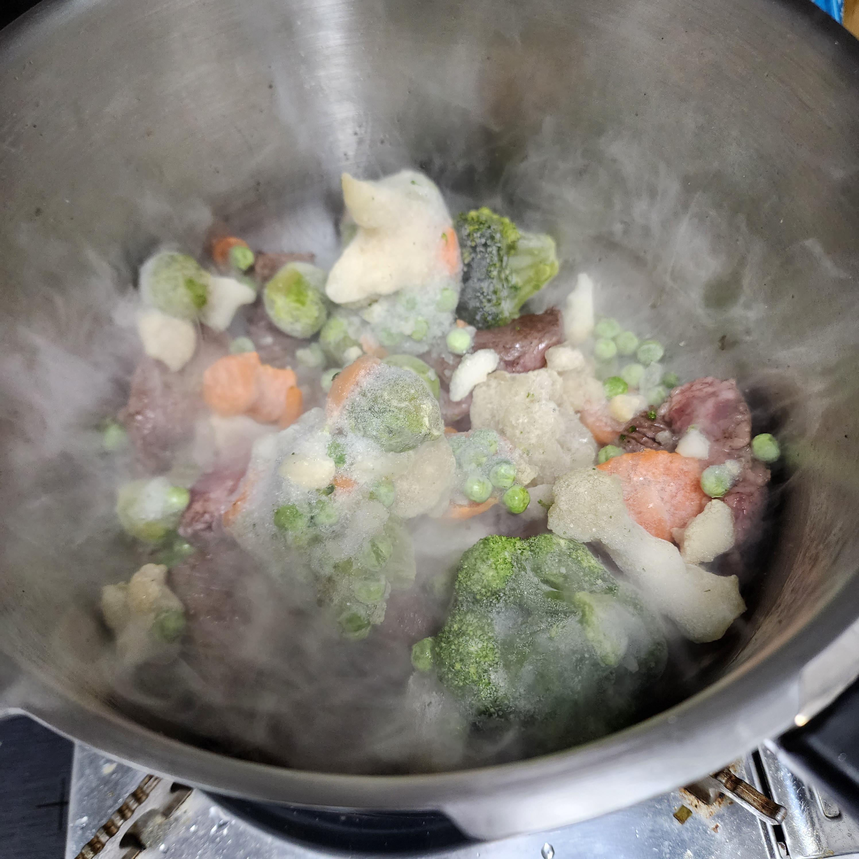 냉동야채를 사용하는게 가장 무난하지만, 생 야채를 사용하실 경우엔 당근,브로콜리,양배추등을 넣어주시면 되요